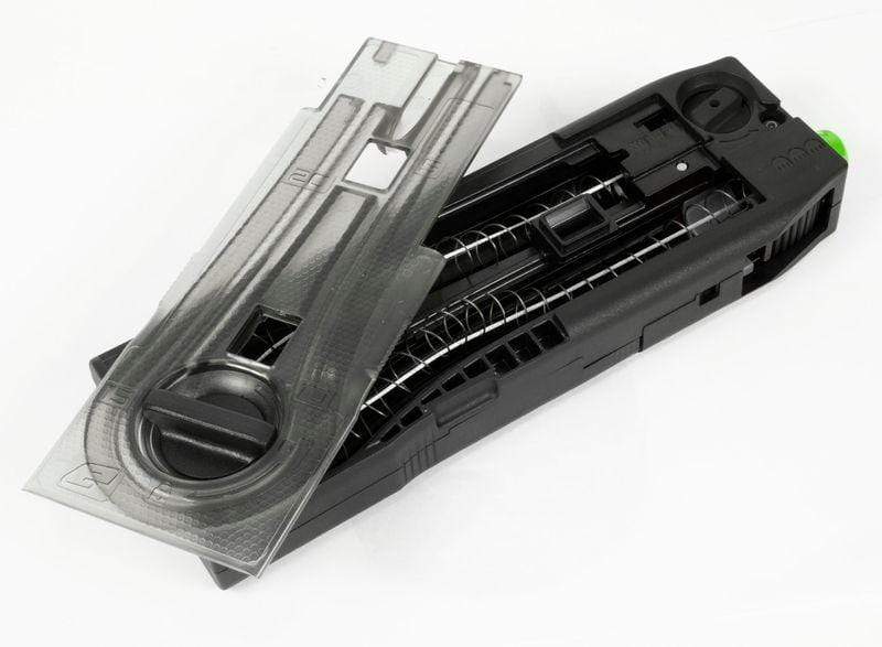 Die komplette Linke Seite des Magazins ist transparent gehalten und erlaubt so das prüfen vom Munitionsstand und eventuellen Klemmern oder Verunreinigungen.