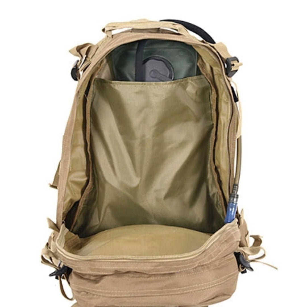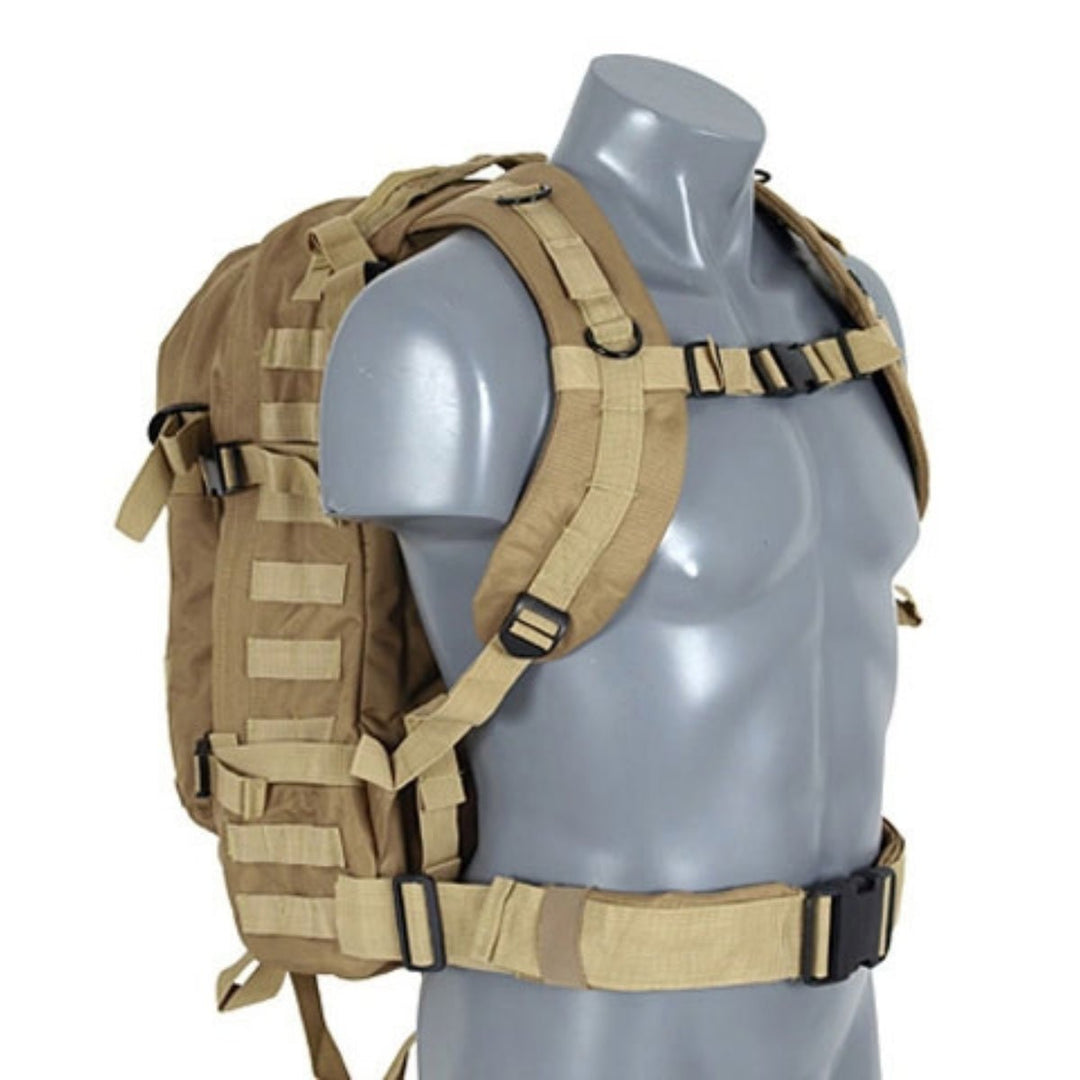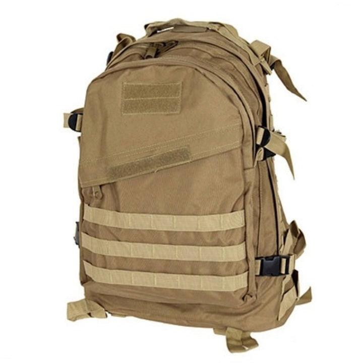 Rucksack mit MOLLE-Gurtband für modulare Befestigungen. Hergestellt aus strapazierfähigem, wasserabweisendem, beschichtetem Polyester.