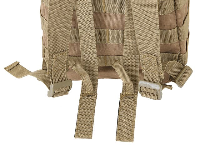 Dieser Rucksack ist mit Standard-Schultergurten sowie Gurten für das Molle-System ausgestattet. Dank dieser Lösung kann er separat verwendet oder an einer Weste befestigt werden. Außerdem verfügt er über eine Außentasche mit Molle-Schlaufen und einer Klettfläche, die das Anbringen zusätzlicher Accessoires erleichtert.