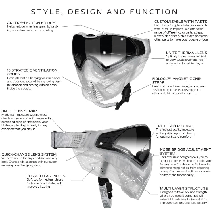 Die Push Unite Maske ist Top, da ich Brillentraeger bin, suchte ich eine Maske und muss sagen, der Preis ist es definitiv wert. Da drueckt nix und man kann sogar eine groessere Brille darunter tragen. Auch der Versand und Lieferung von Paintball Buddy war Top, kann ich nur weiterempfehlen, danke euch.