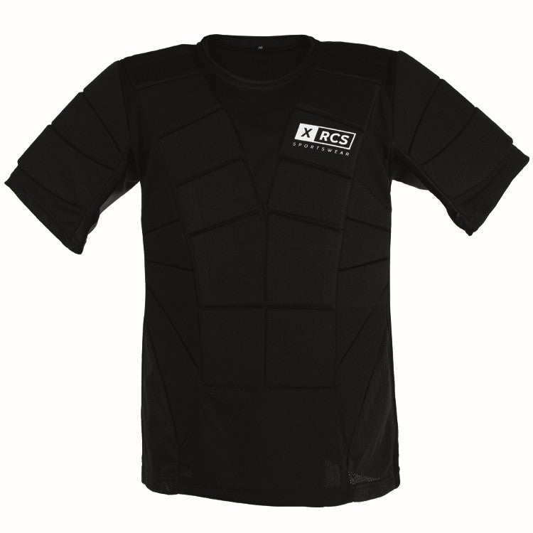 It has ergonomically distributed padding plates in the stomach, chest and back area and optimally protects the player from painful hits. The breastplate is lined with breathable elastane in the rib area. This ensures optimal air circulation and maximum freedom of movement during the game.