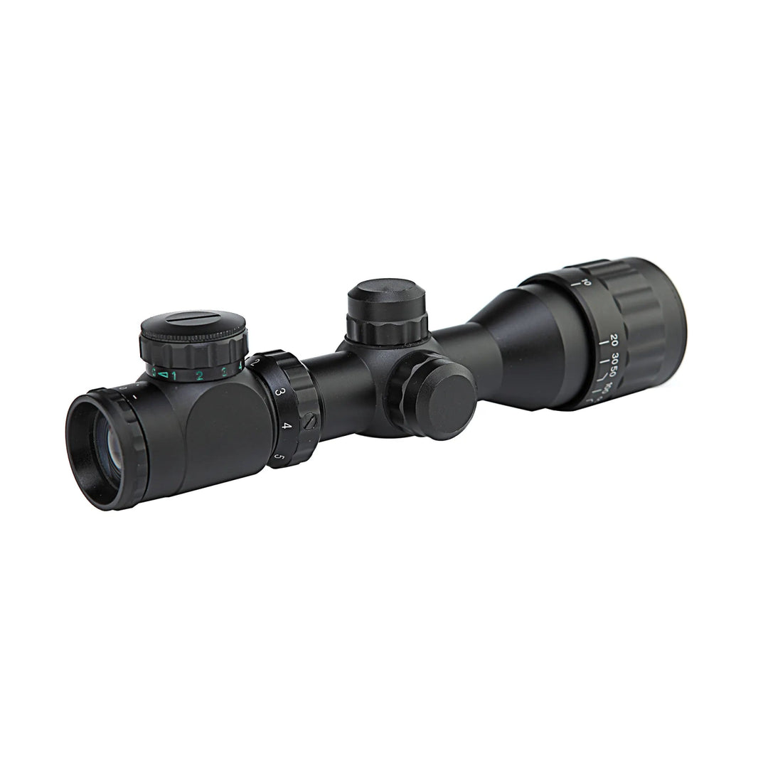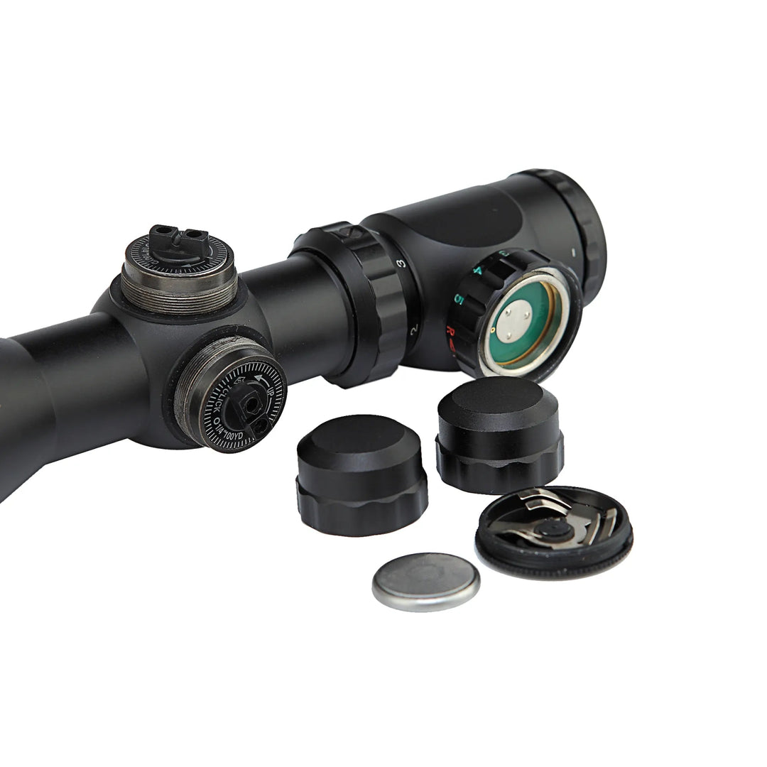 Für Einsätze unter verschiedensten Lichtbedingungen ist das Zielfernrohr mit einer Beleuchtung in Rot und Grün ausgestattet, die in 5 Helligkeitsstufen eingestellt werden kann. Dies sorgt für eine klare Sicht auf das Ziel, unabhängig von der Umgebungshelligkeit. Die Stromversorgung erfolgt durch eine 1*CR2032 Batterie, die eine lange Lebensdauer und eine zuverlässige Leistung gewährleistet.