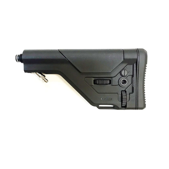 The Sniper CXP buttstock has a remote line connection and is compatible with all markers that have a rear air ASA.