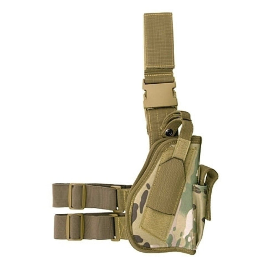 A spare magazine can be accommodated on the front and a snap fastener with Velcro is standard.