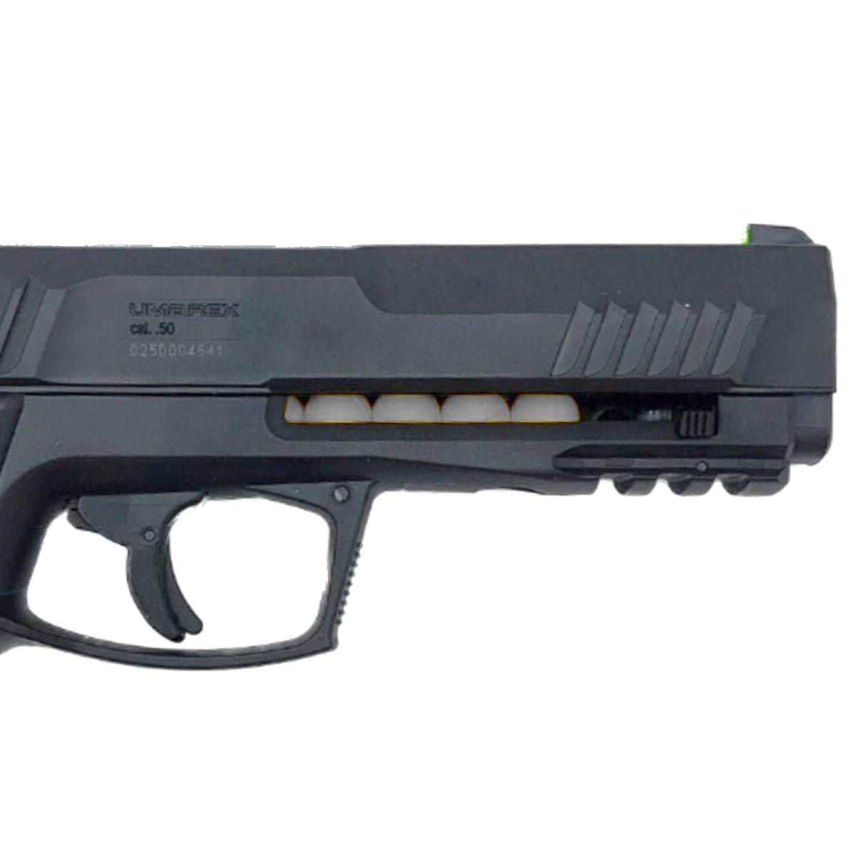 Die HDP 50 Gen2  ist eine CO₂-betriebene Pistole im Kaliber .50. Sie verschießt Gummikugeln, Farb- oder Pfefferkugeln mit hoher Energie – ganz ohne scharfe Munition.